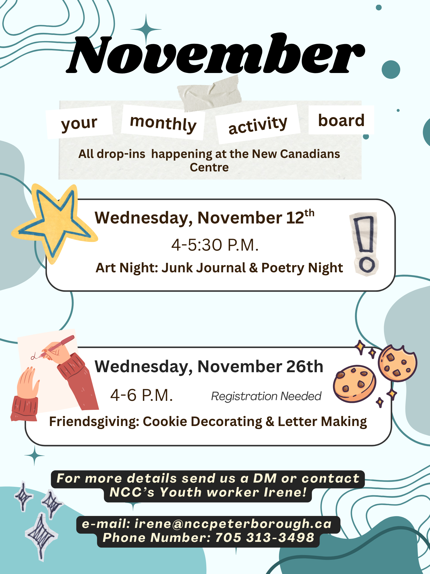 Meet other newcomer youth, make new friends, and take part in games, crafts, and great conversations. Each week offers something different — from fun activities to workshops that build confidence and community connections.